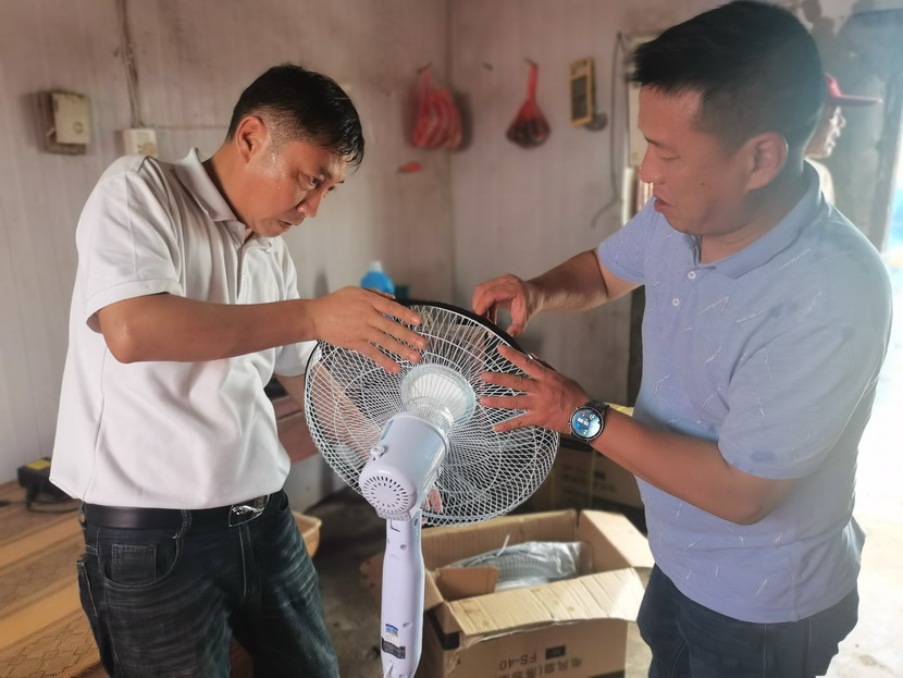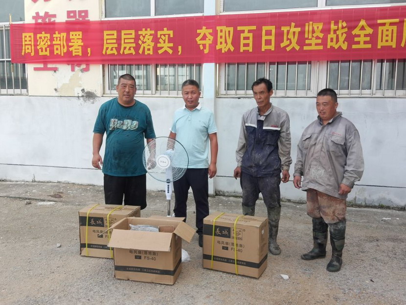 15臺風(fēng)扇陸續(xù)送至“先鋒、昌圩、大浦”三個礦鹽班組,公司領(lǐng)導(dǎo)一邊親手為職工進(jìn)行安裝,一邊與他們親切交談,詳細(xì)了解職工需求,充分肯定他們不畏艱辛、吃苦耐勞的奉獻(xiàn)精神,叮囑他們做好防暑措施,保障身心健康,同時保障生產(chǎn)作業(yè)安全平穩(wěn)。