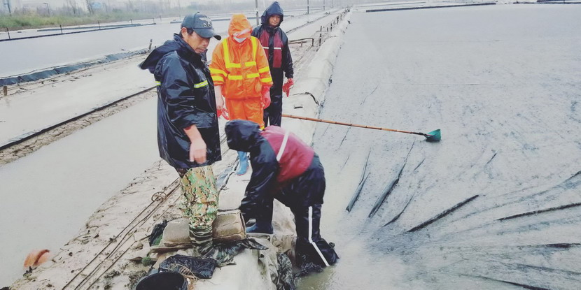 不僅僅是礦鹽班組,在海濱鈣液灘,老黨員、領灘手伏廣銀、董良平一直堅守在崗,他們不僅干好自己的本職工作,在其他領灘手被居家管控的時刻,他們來到其他單元幫助走水以及其他日常工作,經(jīng)常一干就是12個小時;在鈣液原料水儲備池,龔成春每天是按時按點到達灘地,進行灘地巡視,做好巡視登記,沒有因為疫情影響而耽誤一天,遇上暴風雨等惡劣天氣,他就住在值班室,每天晚上要加巡一次,保證僅有的原料水能得到最大化的利用;在鈣液銷售點,程輝、徐松保響應疫情防控應急預案,備齊醫(yī)用口罩,酒精,消毒液等防疫物資,每天對前來的鈣液運輸車進行消毒,對司機進行體溫測量、“三碼”登記,確保鈣液銷售安全有序。