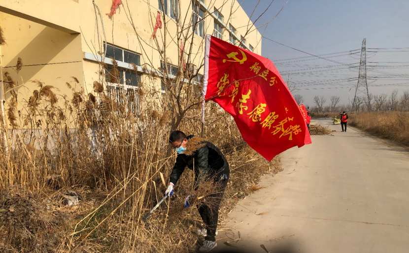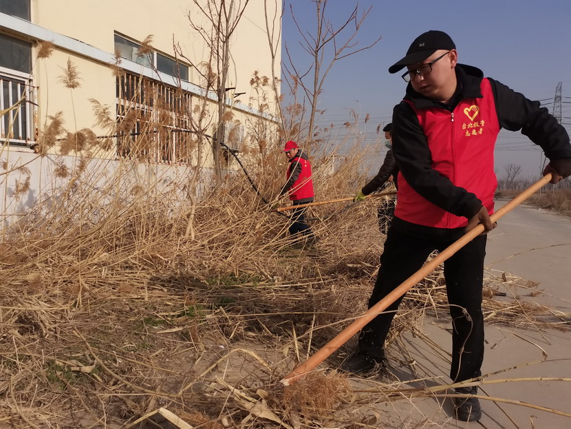 ? ? ? ? 3月4日,按照活動統(tǒng)一安排,志愿者們紛紛抵達各自點位開展統(tǒng)一活動,本次活動主要是清理公司主次干道兩邊的雜草以及各種彩色垃圾?;顒又?,身著紅色馬甲志愿者分工協作,首先由男同志們對周邊的蘆葦、鹽薅進行地毯式收割,大家揮動著鐮刀、鐵锨,干的十分起勁,顧不得漫天飛舞的蘆葦花和灰塵。女同志們負責用釘耙將割下的雜草以及死角里的彩色垃圾,摟到一起便于集中清理。在勞動過程中大家互相幫助、互相合作,很好的展現了集體的團結協作精神,有的同志手不小心被木板上的釘子劃傷了,擦干凈血接著干。經過2個小時的清理,主次干道煥然一新。