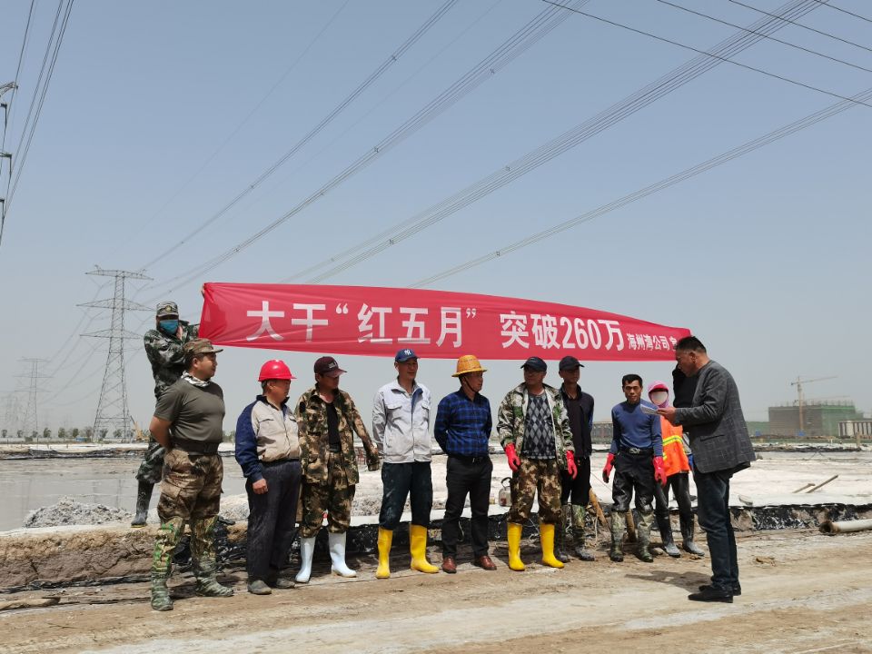 5月8日上午,海州灣公司在扒鹽現(xiàn)場,利用搶修扒鹽機械的間隙,組織當(dāng)班職工迅速傳達(dá)了投資公司“大干紅五月,再創(chuàng)新佳績”動員大會會議精神,積極宣貫投資公司政策和鹽鈣產(chǎn)業(yè)當(dāng)前面臨的嚴(yán)峻形勢,并制定公司大干紅五月小指標(biāo)勞動競賽方案,開展職工勞動技能大比武,明確公司五月份經(jīng)濟指標(biāo),動員全員要團結(jié)奮進,樹立榮辱與共的集體榮譽感,進一步凝聚奮進力量,提升干群士氣,全力沖刺五月份扒鹽10000噸、排鹵60000方、實現(xiàn)營業(yè)收入260萬元的經(jīng)濟目標(biāo),掀起大干紅五月的熱潮,營造齊心協(xié)力、大干快干的良好局面。