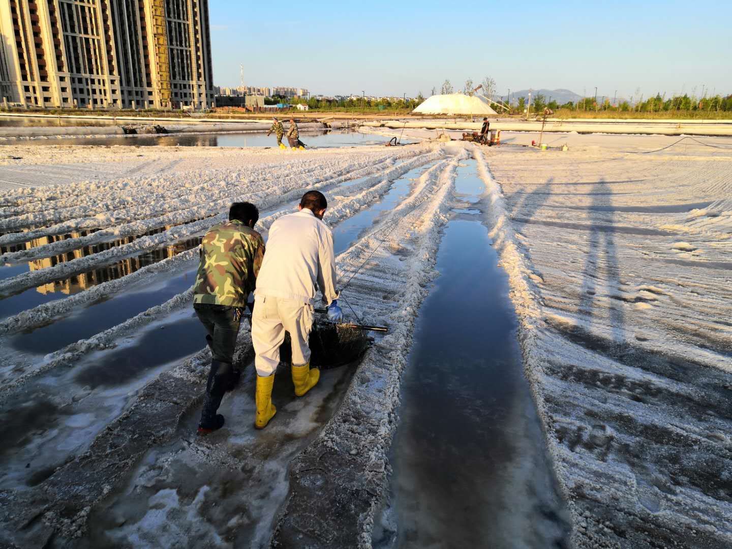 工區(qū)加大結(jié)晶工藝調(diào)整力度,塑苫布及蓋及收,不放過1毫米蒸發(fā)量,真正做到“云彩縫里奪鹽斤”。對走完鹽的廩基進(jìn)行泡制,充分挖掘制鹵潛力,抓好窮制鹵。嚴(yán)把結(jié)晶灌池關(guān)、鹵水進(jìn)池關(guān)、塑池管理關(guān)、結(jié)晶環(huán)境關(guān),搶天時(shí)、抓制鹵、促工藝、結(jié)合實(shí)際加深水工,強(qiáng)制飽和鹵水。針對14、15班已征用灘地,在機(jī)械扒鹽后又用人工進(jìn)行二次扒鹽,將塑池內(nèi)的鹽斤徹底收回,真正做到顆粒歸倉,為完成原鹽生產(chǎn)計(jì)劃盡心、盡力。
