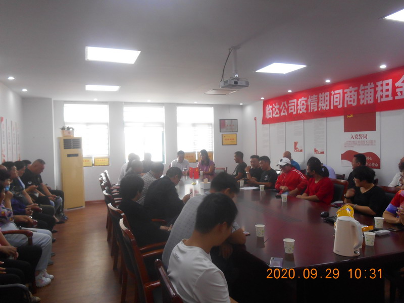 臨達(dá)公司黨支部堅(jiān)決和黨中央保持一致,堅(jiān)決擁護(hù)黨中央的決定,認(rèn)真學(xué)習(xí)了省、市以及集團(tuán)公司等減免疫情期間房租的相關(guān)文件精神,仔細(xì)研究、反復(fù)討論,經(jīng)上報(bào)臺(tái)北投資公司、集團(tuán)公司兩級(jí)黨委批準(zhǔn),9月29日下午,減免光伸建材市場(chǎng)、德蘭建材市場(chǎng)、金三角市場(chǎng)、原公司院內(nèi)倉庫、院外大棚、猴嘴山洞共48家商戶3個(gè)月租金,計(jì)52萬余元,減免金額達(dá)全年租金收入四分之一。