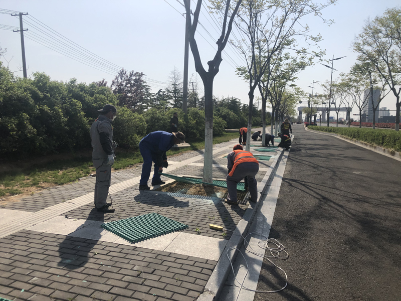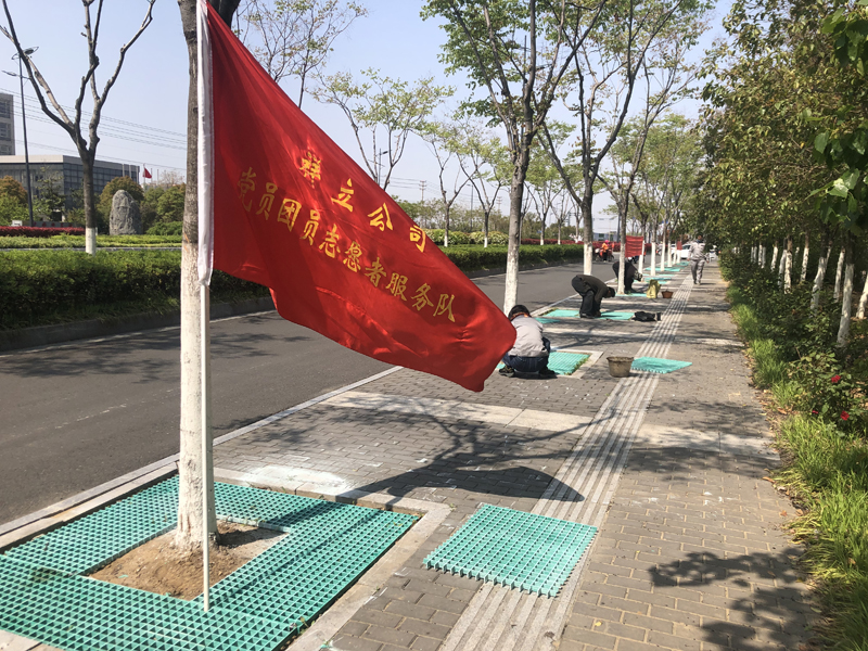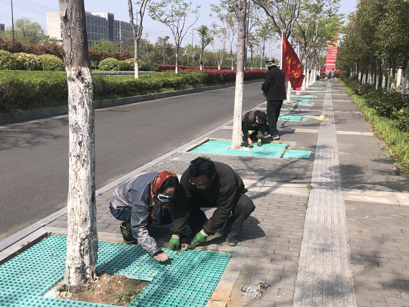 本次志愿奉獻活動內(nèi)容是對黃海大道兩側(cè)樹池進行隔柵安裝工程。在接到華茂公司的工程項目后,得知要在3天之內(nèi)對300座樹池進行作業(yè),各班組在辦公群了解到此項目的工期緊且工程量大時,自發(fā)組織了一場志愿奉獻活動。第二天早晨8點,26人的身影出現(xiàn)在了黃海大道,炎炎烈日下,我們分成4個小組,有的手握鐵鍬進行填土、有的負(fù)責(zé)投放隔柵、有的手拿切割器進行切割、有的進行安裝作業(yè),分工明確、井然有序,充分發(fā)揚了“四拼”工作作風(fēng)。