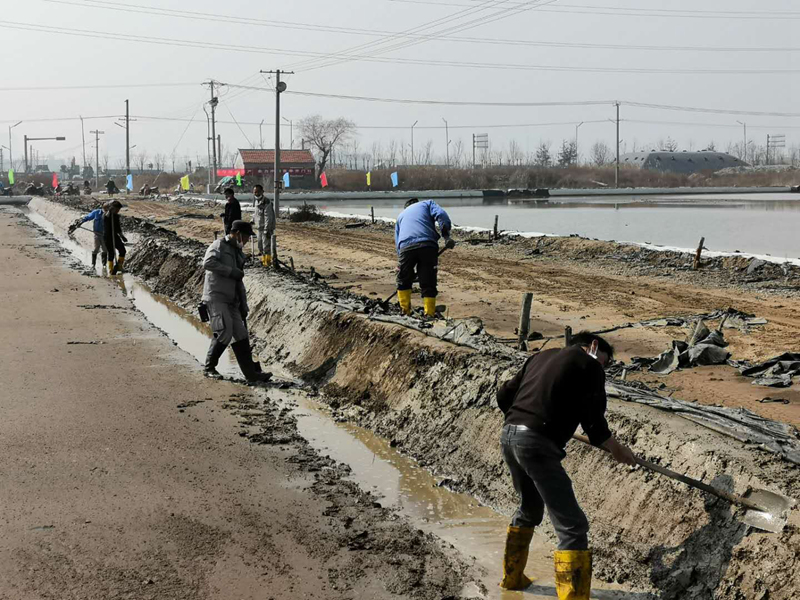 疫情攔不住奮進(jìn)者們,大浦全體員工投入了一場又一次的緊張繁忙的原鹽生產(chǎn)中。他們克服疫情影響充分利用初春的間隙時間,對塑布拉放、修補(bǔ)、灘地整修、鹵水收儲進(jìn)行及時有效的修復(fù)與儲存,為確保完成原鹽生產(chǎn)計劃奠定堅實的基礎(chǔ)。
