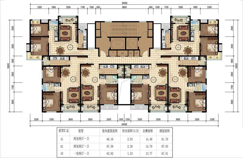 項目規(guī)劃有五種戶型(A1、A2、A3、B1、B2),房源共計548套。其中:A1、A2、A3戶型分布在A1#、A6#樓,共240套;B1、B2戶型分布在A2#、A3#、A4#、A5#樓,共308套。