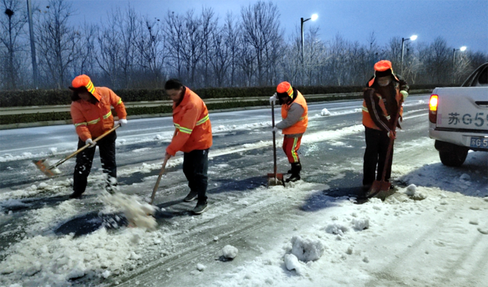 2月19日至21日,受持續(xù)大風(fēng)寒潮天氣影響,給徐圩新區(qū)、板橋工業(yè)園區(qū)各條道路蓋上較厚冰層。為全力以赴掃雪除冰、排除隱患,悅升公司堅持“人動機(jī)動、雪停雪凈”原則,落實好“三包三聯(lián)”工作機(jī)制,實現(xiàn)道路通暢、安全出行,切實保障好廣大群眾正常生產(chǎn)生活秩序和生命財產(chǎn)安全。