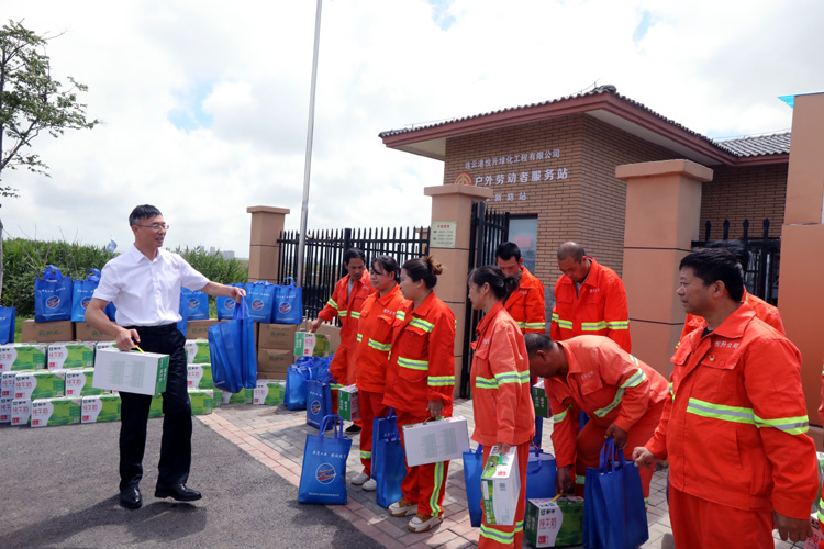 在徐新路職工休息點(diǎn),張六林向在高溫酷暑天氣下仍堅(jiān)守在一線的職工表示敬意和感謝,對(duì)職工們艱苦奮斗、吃苦耐勞的奉獻(xiàn)精神給予高度肯定和贊揚(yáng),并叮囑他們?cè)谧ドa(chǎn)、保安全的同時(shí),注意防暑降溫,做好個(gè)人防護(hù),以飽滿的精神和身體狀態(tài)高質(zhì)量完成各項(xiàng)工作。并為大家送上大米、牛奶、綠豆、白糖慰問品。