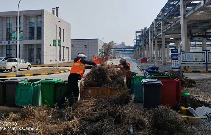 為營造石化園區(qū)內(nèi)部優(yōu)美整潔靚麗環(huán)境,保潔分公司聞令而動(dòng),第一時(shí)間趕赴中化倉儲(chǔ)公司院內(nèi),高質(zhì)高效完成突擊清理任務(wù)而努力奮戰(zhàn)。