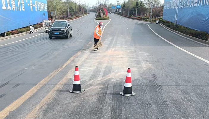 強化突擊重保潔。四月份以來完成園區(qū)大小突擊保障3次,完成橋梁排水孔疏通工作。針對管養(yǎng)轄區(qū)域過往大型車輛大量石子拋灑、渣土遺漏實際情況,該公司分類處置,對癥下藥,對于此類拋灑頻率較高路段,采取增加作業(yè)人員、黨員突擊奉獻、人機結合清理等形式,保證路面整潔,消除安全隱患。
