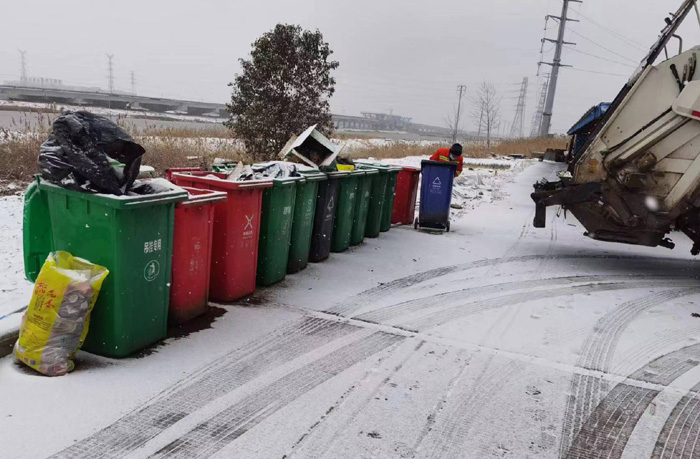 垃圾清運工作絕不后退。暴雪之中垃圾收運工作極其困難,既要面臨嚴寒考驗,又要防范雪中路滑。垃圾收運職工們清晨五點多天未曉白時即已全面開展工作。面對雪天路滑,他們小心翼翼的做好每一桶垃圾的收運和傾倒。嚴寒之中,面頰和雙手被凍的通紅,忙碌的汗水濕透衣襟,他們也馬不停蹄的做好徐圩新區(qū)范圍內(nèi)大小七八十個垃圾收運點垃圾清收工作,只為給片區(qū)居民和企業(yè)創(chuàng)造和諧的衛(wèi)生環(huán)境,沒有任何艱難畏阻他們行進的步伐。