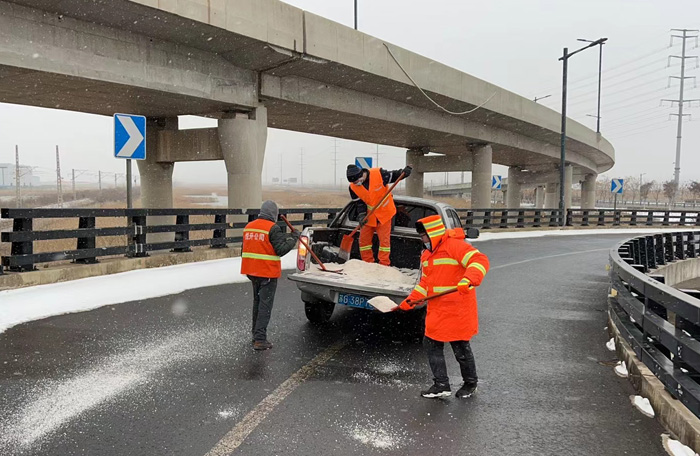 掃雪除冰工作刻不容緩。按照悅升公司掃雪除冰工作任務分配,環(huán)衛(wèi)分公司負責228徐新路到環(huán)保大道路段掃雪除冰任務。該區(qū)域內(nèi)因含有張圩互通大橋,光橋梁匝道、輔道就有8條,上下路段非常陡滑,給掃雪除冰工作帶來極大挑戰(zhàn)。但該公司人員堅決認領任務,沒有任何退縮。他們采取車輛緩慢行駛方式,橋梁陡峭路段就使用人工用鐵锨一锨一锨端灑的方式進行。雖然寒風雪天中,不停的作業(yè)使胳膊潑灑的極其酸累,但大家不辭辛苦,沒有一絲怨言,全體人員全部值守在崗,奮戰(zhàn)在掃雪除兵工作第一線,僅2月4日一天,就潑灑融雪劑7車近30噸,為打贏掃雪除冰功堅戰(zhàn)打好堅實基礎。(晁華)