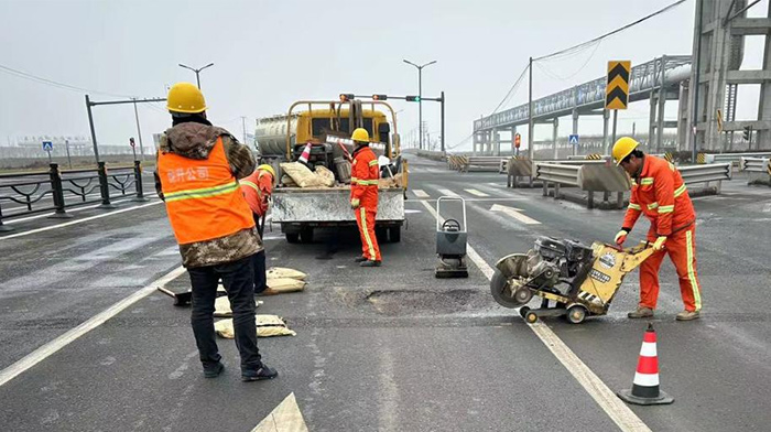 ? ? ? 連日來,為了保障新區(qū)道路平穩(wěn)暢通,市政分公司組織專業(yè)力量,分組開展坑洞修補(bǔ)。市政維修人員加班加點(diǎn)先后對港前大道、徐新路、海濱大道、石化區(qū)陬山路等重點(diǎn)道路大小坑塘30余處破損部位進(jìn)行修補(bǔ)。