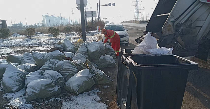 早上六點,在徐圩新區(qū)垃圾轉(zhuǎn)運站,環(huán)衛(wèi)分公司垃圾清運班組班長羅海軍正在等著垃圾收運中轉(zhuǎn)車的到來。他說:“知道昨晚下雪了,今天我們提前一小時就上崗了,以防因為道路濕滑影響收運效率?!?據(jù)統(tǒng)計,在持續(xù)低溫時段,他們每天清運生活垃圾高達(dá)15噸,清理轉(zhuǎn)運各類果皮箱垃圾達(dá)200余個及19家企業(yè)(單位)的垃圾桶,并同步負(fù)責(zé)裝運由道路保潔工人撿拾定點擺放在路邊的近500包袋裝垃圾。(何春林)