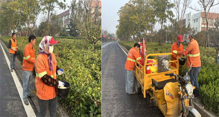 ? ? ? 工作中,班長(zhǎng)李洪利、副班長(zhǎng)李明春,帶領(lǐng)綠化班組30余人,對(duì)云港路、祥和路仁和路,進(jìn)行施肥作業(yè)。“園林衛(wèi)士”手拿施肥工具,2-3人為一小組,采用徒步拋灑方式進(jìn)行作業(yè),縱三路的側(cè)分帶雪松,因長(zhǎng)勢(shì)不良土壤環(huán)境因素,為重點(diǎn)施肥對(duì)象。云港路路線較長(zhǎng),采取分段作業(yè),重點(diǎn)突破。經(jīng)過一天的忙碌,完成既定路段的施肥任務(wù)。