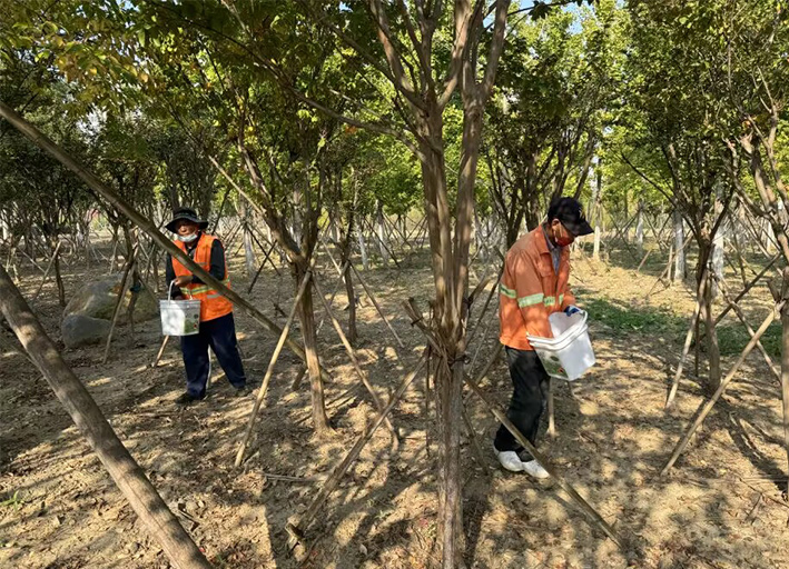 針對連日來持續(xù)少雨干旱的天氣,綠化分公司張圩河公園班組早安排、早部署、早落實,把抗旱保樹木作為當前工作的重點,全力以赴開展“戰(zhàn)干旱、保苗木”攻堅戰(zhàn),進一步提高綠化景觀效果。