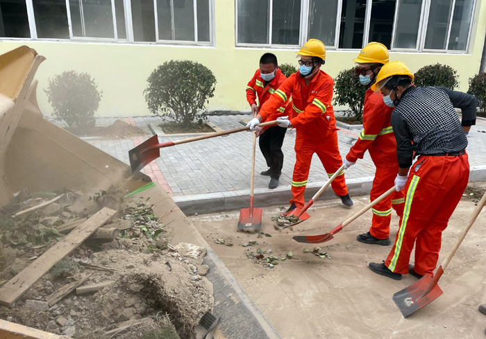面對繁重工作量,為了切實加快施工進度,悅升公司黨員干部主動請纓要求到一線與大家共同奮戰(zhàn)。“不要急,要嚴(yán)格施工流程,確保工程質(zhì)量達標(biāo)……”該公司負責(zé)人馮如師邊說邊邊將工程垃圾裝運到車上。截止當(dāng)前,該公司班子成員帶領(lǐng)機關(guān)工作人員堅守陣地,持續(xù)工作了17日。為確保高質(zhì)高效完成各項工程任務(wù),大家“白加黑”晝夜不間斷的全力奮戰(zhàn),已完成瀝青路面攤鋪1.7萬m2、園路鋪設(shè)3000m2、路緣石安裝1660m、樹池圍牙砌筑1136m、更換下水道篦子130塊……各項工程任務(wù)完成接近尾聲。