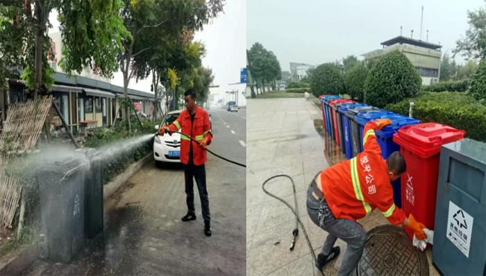 連日來,為進一步提升徐圩新區(qū)環(huán)境衛(wèi)生質量,營造干凈清爽的“兩節(jié)”氛圍,環(huán)衛(wèi)分公司對轄區(qū)內(nèi)生活垃圾桶、果皮箱進行全面清洗,得到了業(yè)主方肯定。