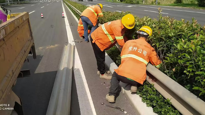 近日,市政分公司道路養(yǎng)護班組在安全巡查中,發(fā)現(xiàn)徐新路路段多處波形護欄被撞受損,存在一定的安全隱患。為確保過往車輛安全通行,市政分公司立即組織人員,調(diào)派車輛和材料及時對已損壞的波形護欄進行更換、修復(fù)。