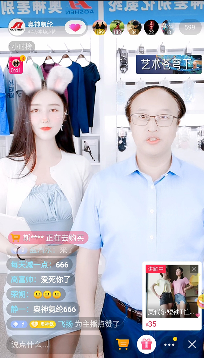 活動(dòng)中,公司總經(jīng)理張斌為直播活動(dòng)開(kāi)幕致辭。張斌總經(jīng)理表示,連云港杜鐘新奧神氨綸有限公司作為國(guó)有企業(yè),將積極借助網(wǎng)絡(luò)直播平臺(tái),探索電商線上發(fā)展新模式,把奧神氨綸的商品更好地推向市場(chǎng)?;顒?dòng)中,我們邀請(qǐng)知名主播為線上的觀眾們帶來(lái)了具有專(zhuān)利抗菌作用的內(nèi)褲、連褲襪、家居服、莫代爾T恤等產(chǎn)品。通過(guò)開(kāi)啟“云逛街”模式,帶領(lǐng)大家在抖音淘寶平臺(tái)感受奧神氨綸的產(chǎn)品和企業(yè)文化。