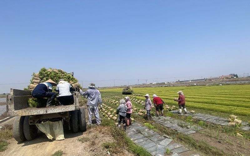 6月12日,大新農(nóng)場搶抓農(nóng)時,依托農(nóng)業(yè)良種、農(nóng)業(yè)科技,加緊開展水田插秧工作,力爭把水稻全部插在豐產(chǎn)期。(王璐)
