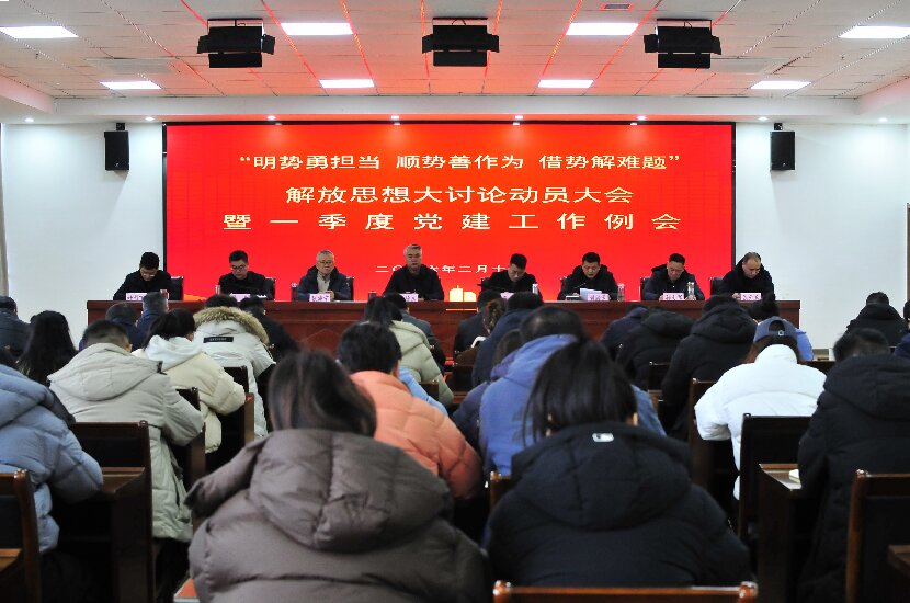 2月10日上午,臺北投資公司黨委在環(huán)保裝備產(chǎn)業(yè)園五樓會議室召開“明勢勇?lián)?dāng) 順勢善作為 借勢解難題”解放思想大討論動員大會暨2026年一季度黨建工作例會。公司領(lǐng)導(dǎo)、各單位黨政工負(fù)責(zé)人、紀(jì)檢專員、分管安全負(fù)責(zé)人、機(jī)關(guān)部門主管以上管理人員參加會議。公司黨委副書記、總經(jīng)理王踴主持會議。會上,黨委副書記、工會主席劉殿龍作“三勢”解放思想大討論動員講話,對一季度黨群重點工作作出具體安排,明確目標(biāo)任務(wù)、推進(jìn)路徑與責(zé)任要求。紀(jì)委書記朱兵傳達(dá)作風(fēng)建設(shè)相關(guān)制度,并就節(jié)前廉潔紀(jì)律作出強(qiáng)調(diào)提醒,引導(dǎo)全體黨員干部守紀(jì)律、講規(guī)矩、知敬畏、守底線。黨委書記、董事長王德志強(qiáng)調(diào),要在“三勢”大討論中統(tǒng)一思想、樹立必勝信心,圍繞“四個有”(有方案、有重點、有特色、有成效)抓實各支部工作;要在大討論中解放思想、堅持創(chuàng)新謀發(fā)展,緊扣“四梁八柱”清晰產(chǎn)業(yè)發(fā)展路徑;要在大討論中苦干實干、奮力實現(xiàn)首季開門紅;要在大討論中轉(zhuǎn)變作風(fēng),以組織優(yōu)勢促發(fā)展,堅決整治躺平、推諉、腐敗等突出問題,持續(xù)抓實黨建工作、強(qiáng)化廉潔建設(shè)、全面提升干部員工綜合素質(zhì)。他要求,全體人員以思想大解放、作風(fēng)大轉(zhuǎn)變、能力大提升推動公司各項工作提質(zhì)增效、再創(chuàng)佳績。會議號召,全...